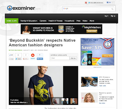 Examiner: 'Beyond Buckskin’ Respects Native American Fashion Designers, August 7, 2012.
