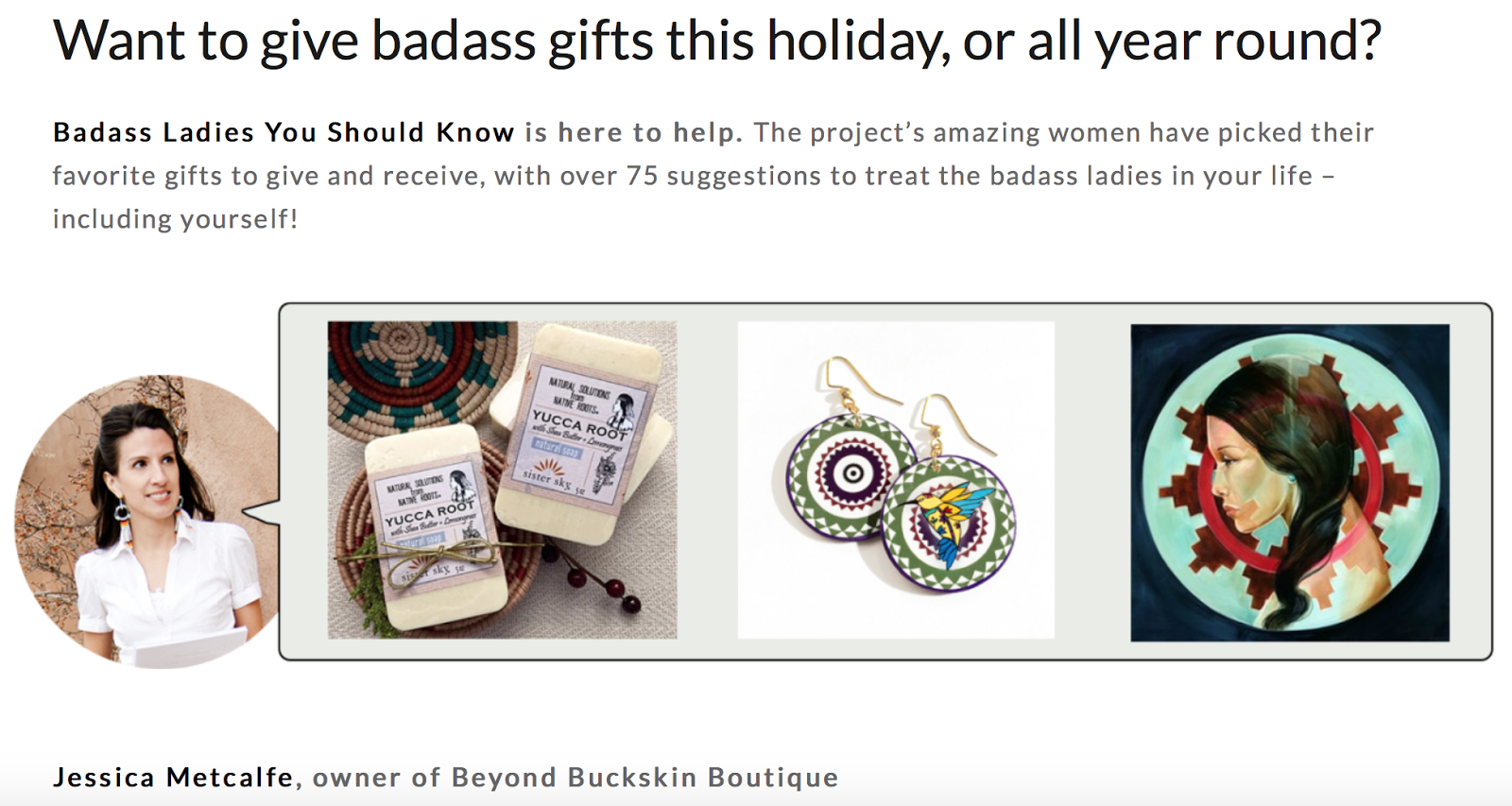 Badass Ladies You Should Know. The Badass Ladies Guide to Gifts, December 2015.
