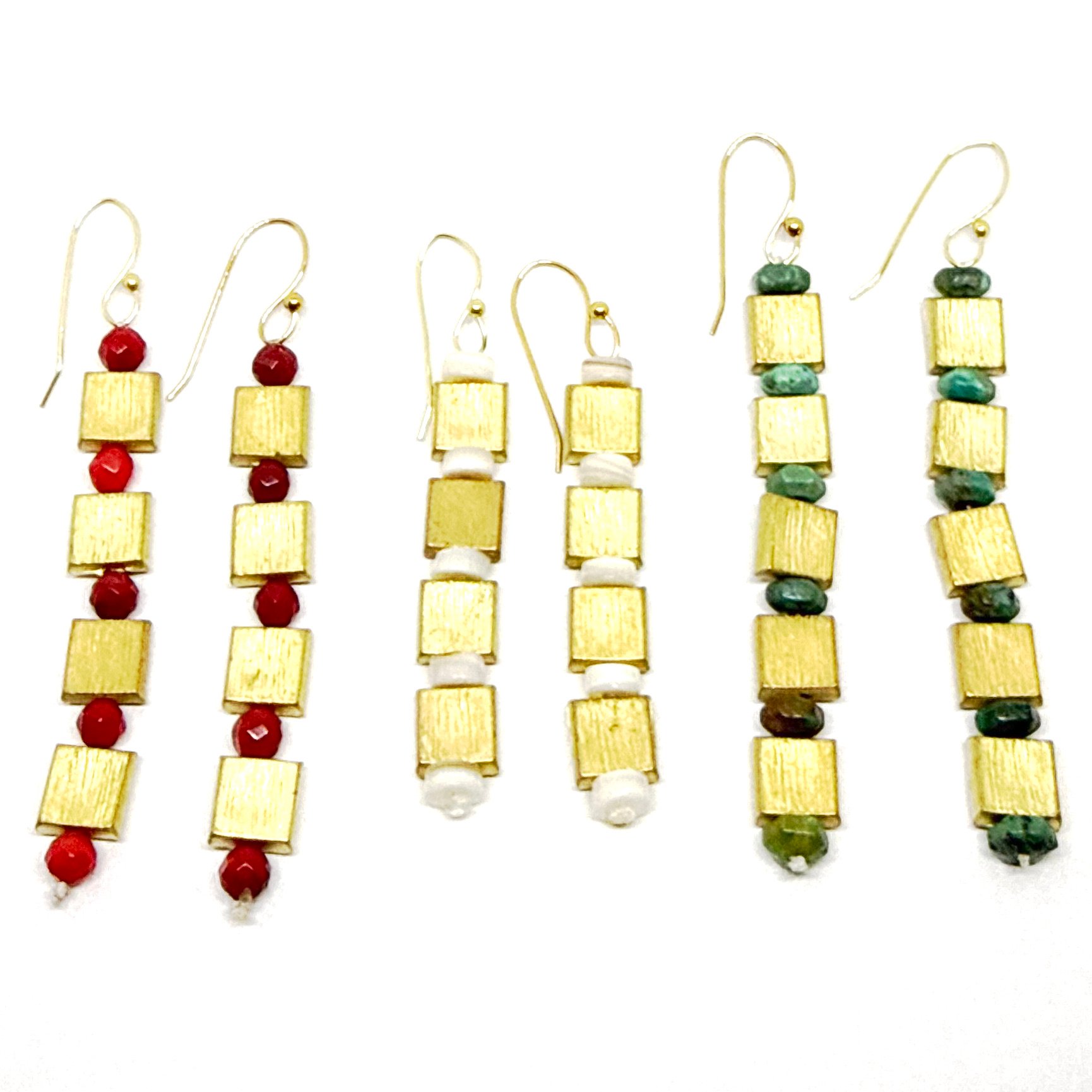 We love how these earrings twist and twirl when worn, and they look fabulous with casual denim for a day look, or with a blouse for work, or with a dress for a night out. The colors of the earrings catch the light beautifully.