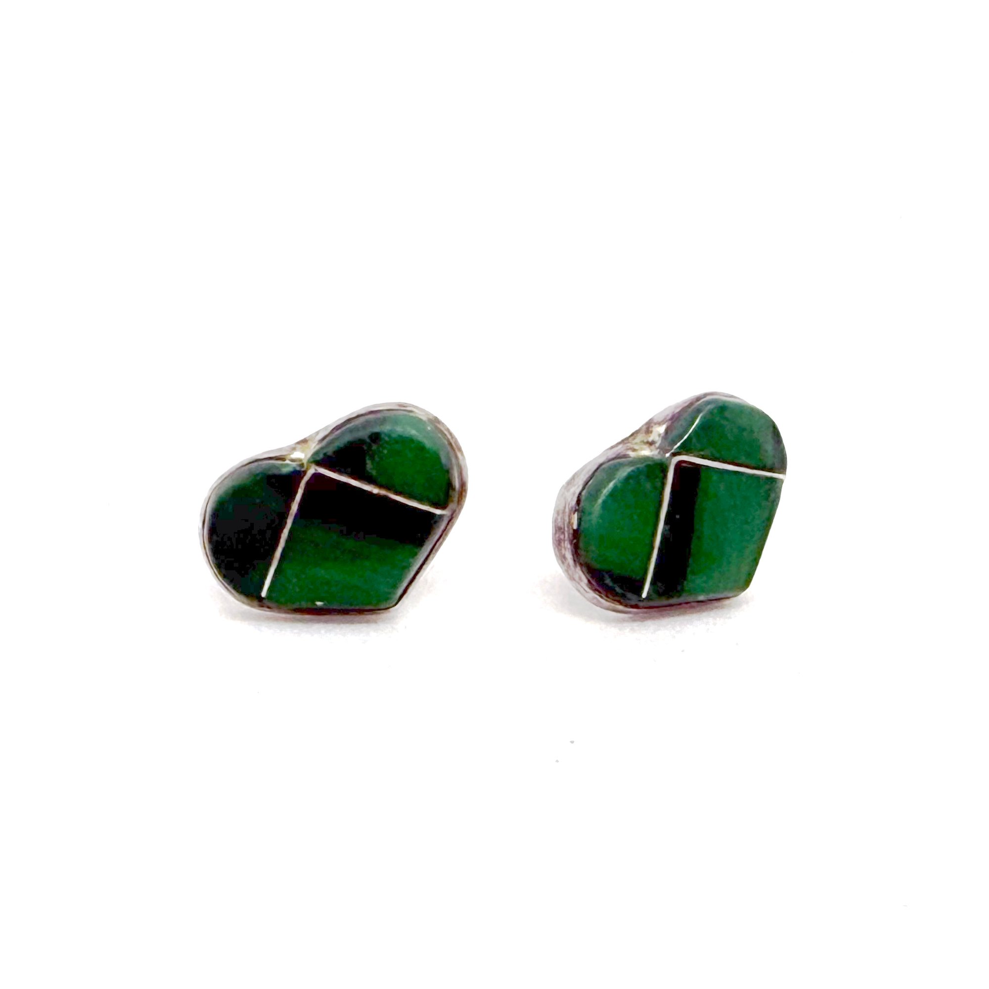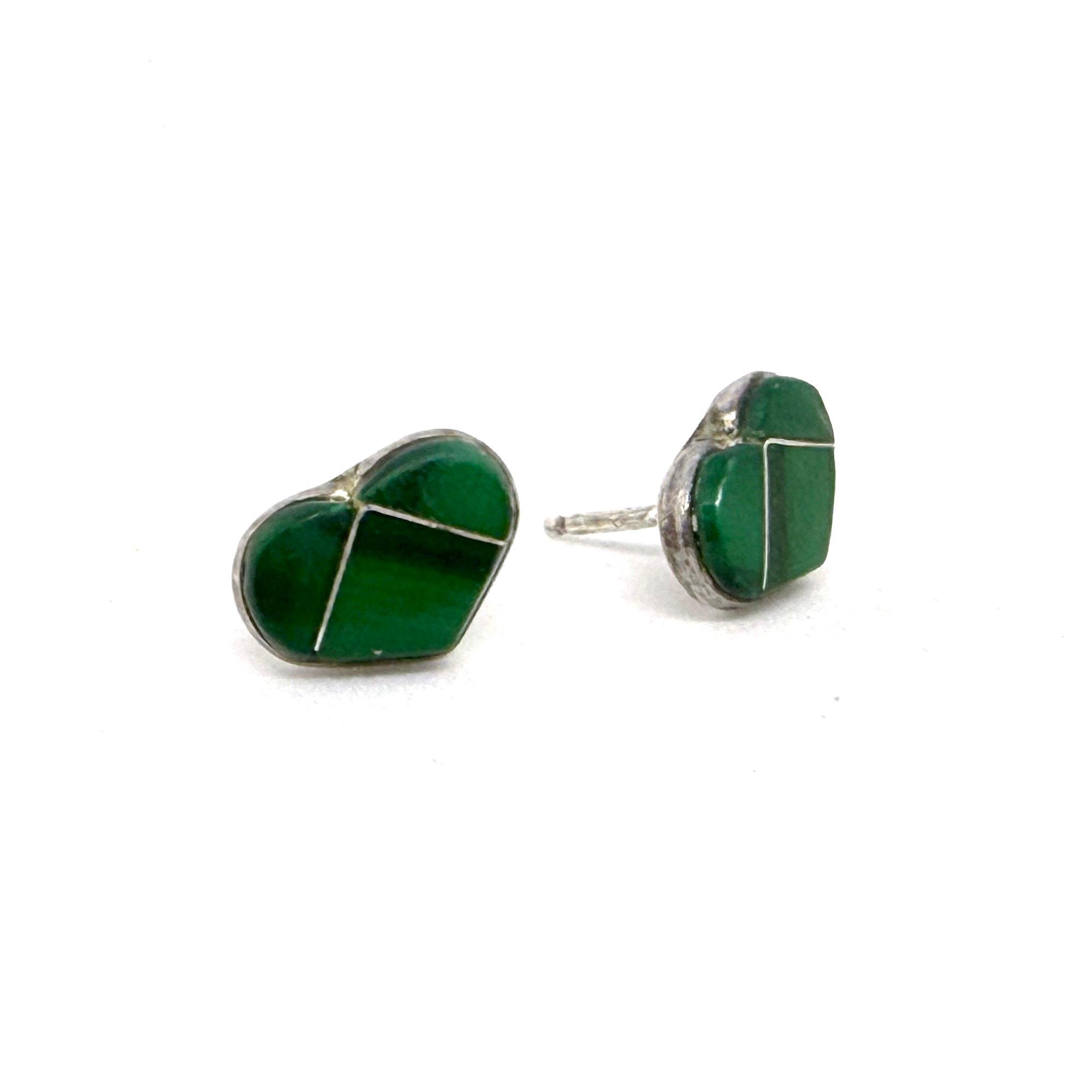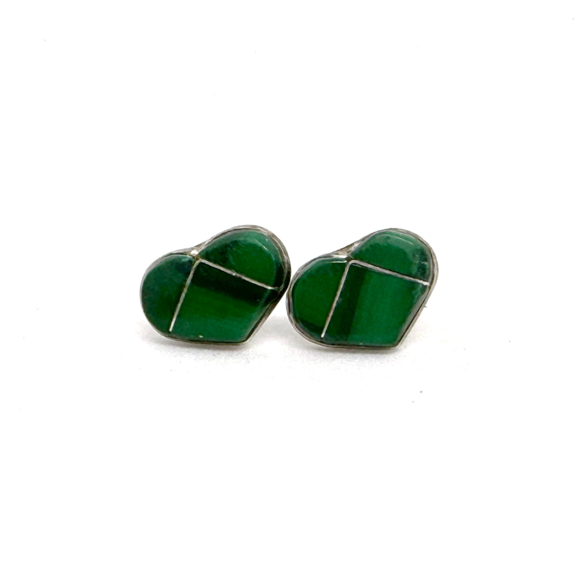 Handmade heritage. These lovely Zuni stud earrings feature green malachite hearts set in sterling silver. The small earrings measure .5" wide and make wonderful gifts for folks of all ages.