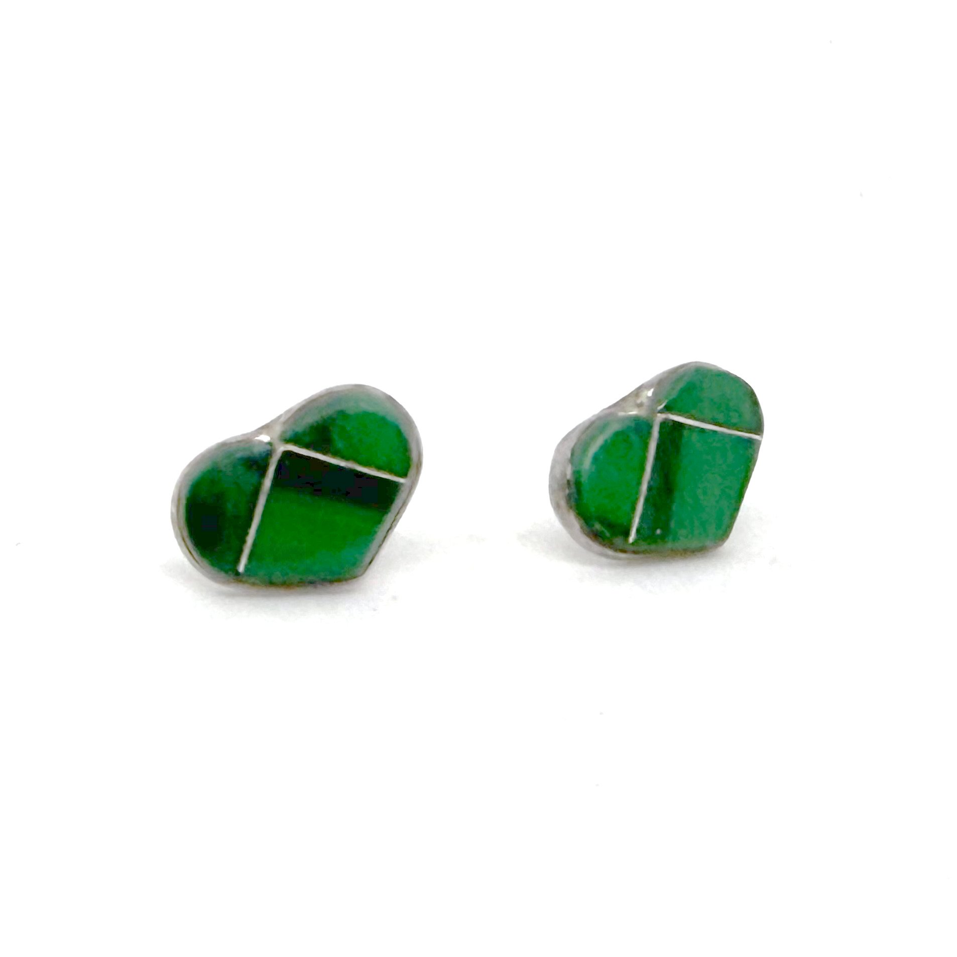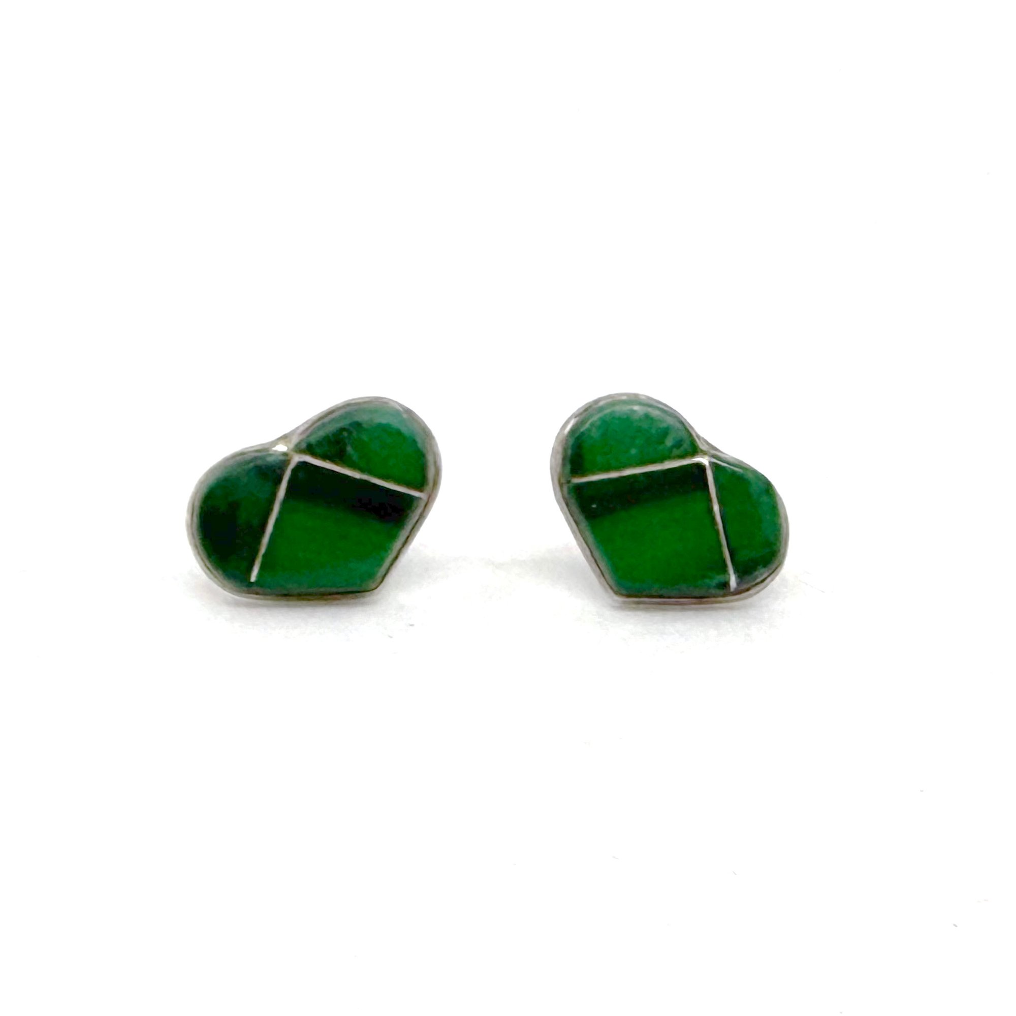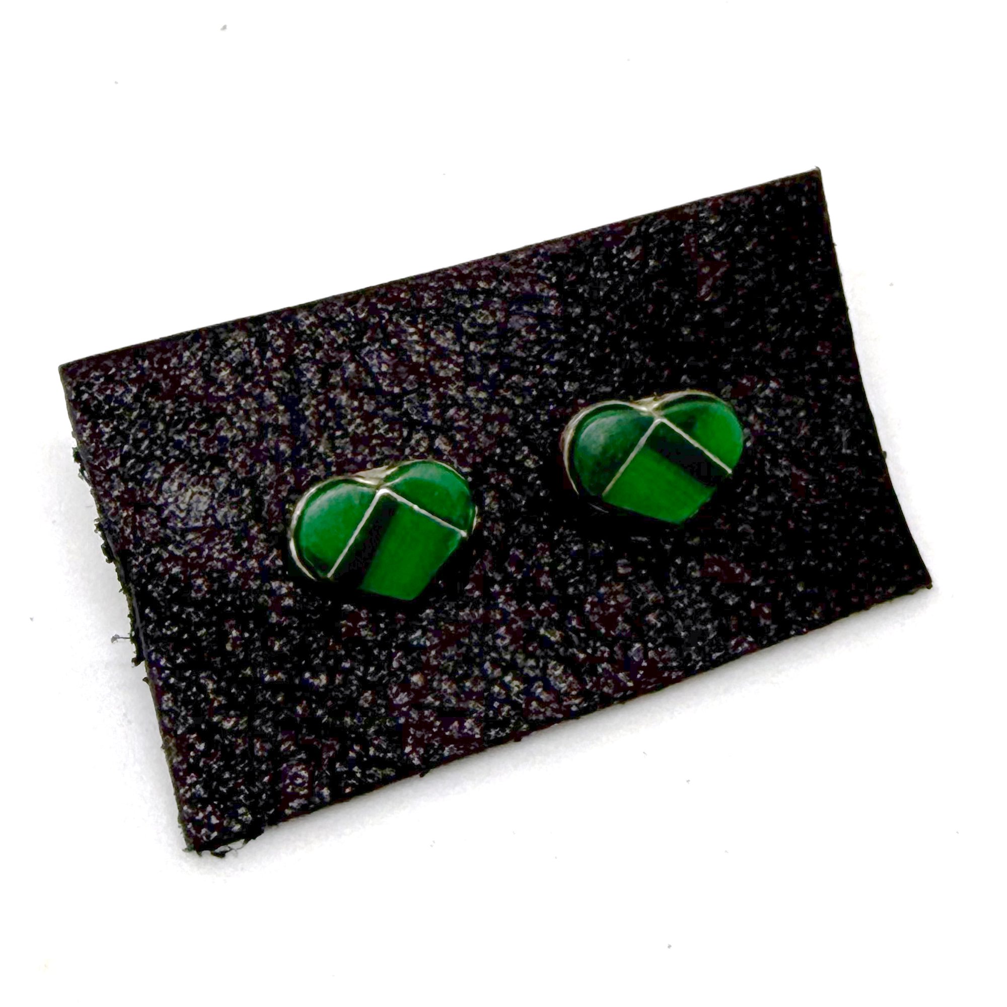Handmade heritage. These lovely Zuni stud earrings feature green malachite hearts set in sterling silver. The small earrings measure .5" wide and make wonderful gifts for folks of all ages.