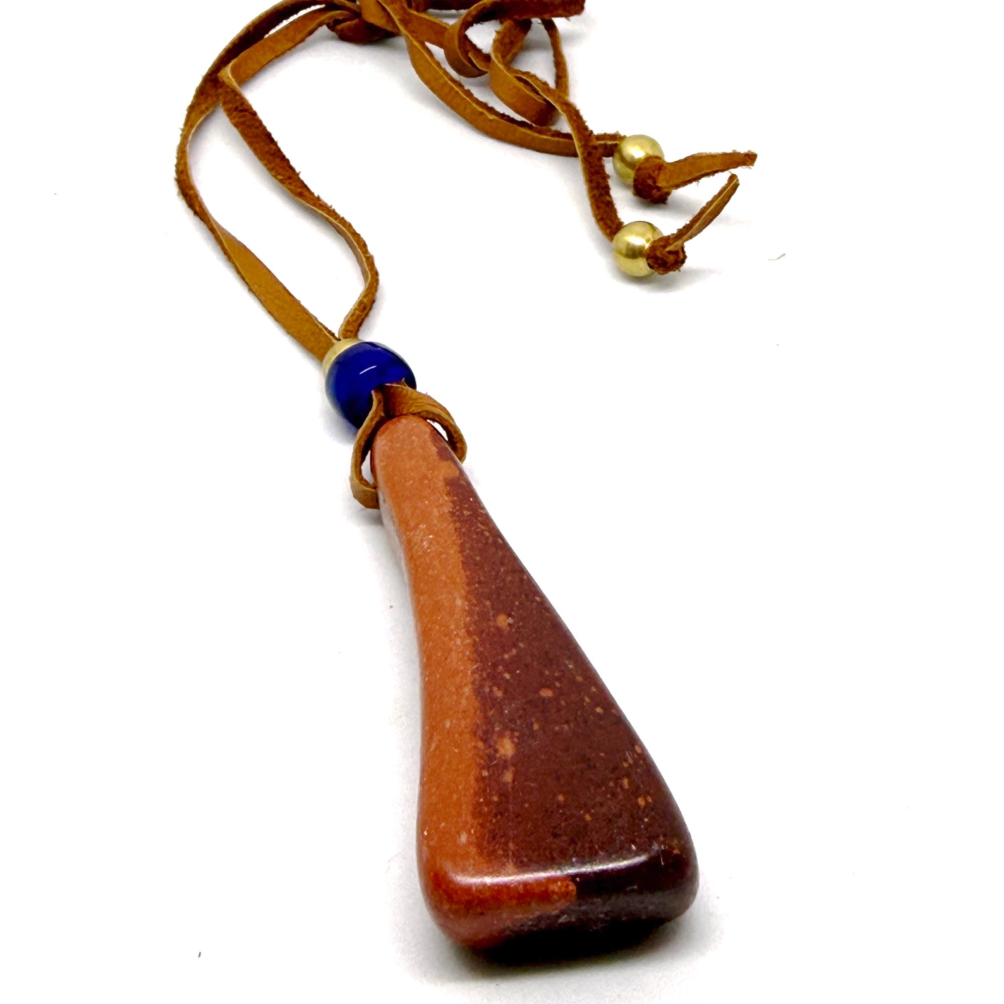 These ethically-quarried amulets are polished with beeswax and hang on a soft adjustable deerskin lace. Wear around your neck, give to someone in need, or hang in an accessible place. Each large pendant is unique. This item ships from the US.