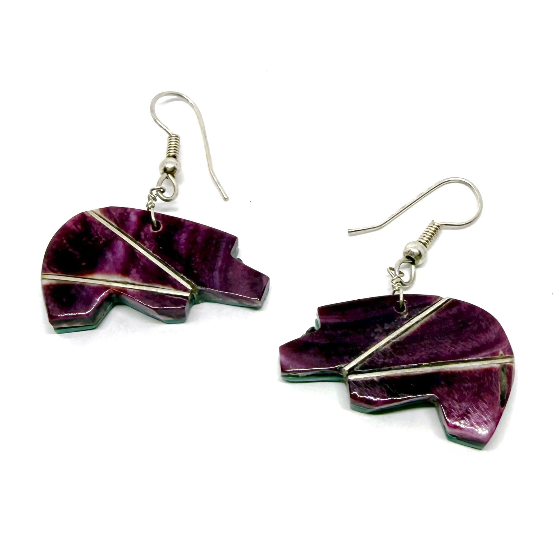 Santo Domingo Bear Earrings (Double-Sided Purple Shell)